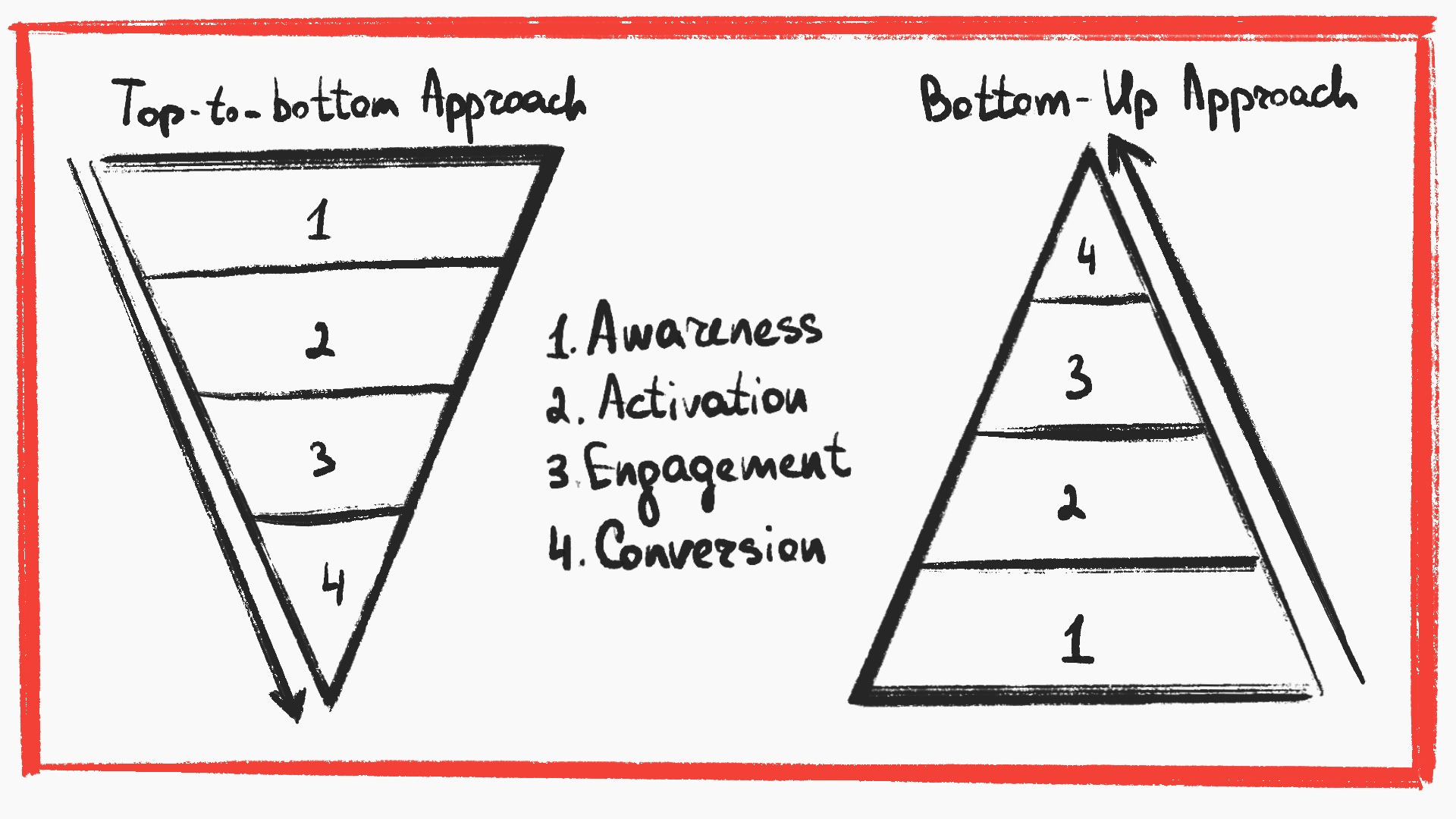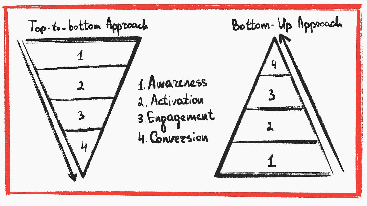 Throughout my newsletters dedicated to marketing, I've referenced the bottom-up approach to building funnels as described in the image below ↓